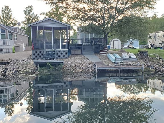 Summer is coming, so get ready to be out on the water, and enjoy those evenings in your HEATED hot tub, housed in a screened in gazebo, sitting near the shoreline of your water front property.  This 1 BR / 1 BA park model has two additional loft areas, perfect for sleep overs or storage.  Seller is leaving all furniture, inside and out.  Outside, there is a spacious deck area, with patio furniture and benches. Boat dock areas for easy fishing and access to the water.   Shed is full of tools, and household essentials the seller will be leaving (compressor, corn hole game, umbrellas, gas grill, ect).  The landscaping is almost maintenance free, so you can be sure to enjoy your time in Shadow Lakes.  What else do you need?  Water heater in 2018, roof in 2012, extra screen and fasteners for gazebo in the loft area.   This is a private gated community. We have miles of fresh water channels, lakes, and marshes all interconnecting. This is the place to fish, swim, or boat, where it can reach 42 feet deep in some areas. (BIG FISH POSSIBILITIES!) Wildlife is abundant as well. This association includes a club house, community pool, a separate sand beach, pavilion, dog park, volleyball and basketball area (other games as well). They offer plenty of family and group activities. Other important notes: Close to I55 & only 60 Mins. from Chicago. Only Electric Boats & Golf Carts allowed. Association Dues are on a tiered basis and depend on the time you spend at the property- . Dues include water, sewer and garbage. Buyer / Buyer's agent to call Shadow Lakes to verify all rules / info. Lot size and square footage is estimated.  Seller will be removing the  lawn decorations and webber grill.  Everything else will remain with the property.