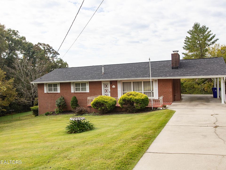 This all-brick basement ranch has been well-maintained through the years and is just waiting for a new owner to make it theirs. Step inside to find a generous living room featuring a cozy fireplace and stunning hardwood floors. Enjoy sunny afternoons in the expansive sunroom that provides a lovely view of the private backyard. The main level features 3 large bedrooms and a carport. Home has had updated windows & has a newer roof. The basement offers loads of storage with a garage door. In-ground pool needs work, has no pump,tc. Property being sold as is, seller will not make repairs.