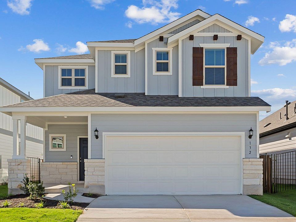 Experience Santa Rita Ranch. This vibrant community features a leisure and lap pool, a splash pad, exciting water slides, and the welcoming Ranch House Amenity Center with outdoor seating and grills. Enjoy scenic nature trails and explore stunning new construction homes showcasing inviting covered front porches and unique stone elevations, complemented by spacious open-concept interiors designed for modern living. Discover the ideal blend of luxury and convenience.