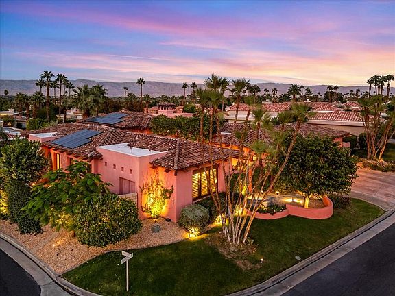 Tucked against a tranquil hillside of Palm Desert, just moments from the shops, dining, and entertainment of El Paseo, this custom-built residence blends artful design with modern luxury. Originally constructed in 2000 by acclaimed novelist and artist John Weston as his private retreat, the home offers a rare balance of privacy, comfort, and sophistication.Recently enhanced by a $300,000 renovation, the property now features a reimagined chef's kitchen, wine pantry, laundry room, garage, and landscaping, along with the transformation of the large fourth bedroom--currently serving as a media room yet easily converted back into an attached casita.Designed for both relaxation and entertaining, the home showcases 10 and 14 foot ceilings, Italian porcelain and wood flooring, and abundant natural light. The saltwater lap pool and spa invite serene outdoor living, complemented by slate patios, outdoor fireplace, tranquil garden fountain, and sweeping mountain, desert and city views.Notable features include an owned solar system, refrigerated and insulated walk-in wine and beverage pantry, whole-house water softener, reverse osmosis filtration, and an air-conditioned garage equipped with two hydraulic car lifts--allowing parking for up to four full-size cars.Each of the four bedrooms offers a private ensuite bath (one with steam shower) individual climate and sound controls, ensuring comfort and privacy for all. Every exterior door is crafted from wood, many as elegant French doors opening to the home's inviting outdoor spaces.Located within the gated community of Vista Paseo on approximately one-third acre of fee-simple land, this home embodies desert living at its most refined--private, artful, and designed to entertain beautifully.Call listing agent for your private showing.