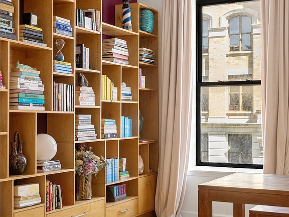 Upstairs, you'll find the primary suite with a jacuzzi tub, and a 130-square-foot private terraceperfect for morning coffee, sunset drinks, or just some quiet outdoor time. Downstairs, there are two additional roomsa bedroom and a flexible office/guest loftplus a bright, open living and dining area. The open kitchen boasts stainless steel appliances and the living room's high ceilings are highlighted by floor-to-ceiling built-in bookshelves. With custom California closets, there's more than enough storage for everything you need. The apartment also has a well equipped home gym-- a rare find in NYC!