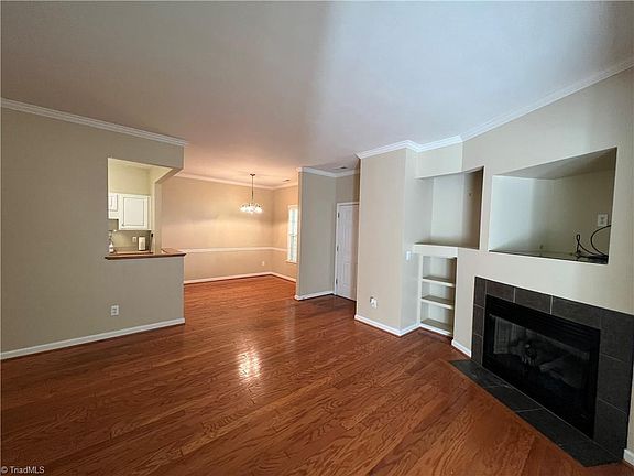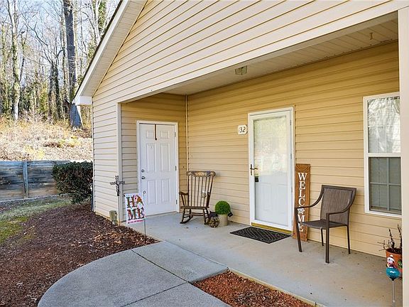 Welcome to Milling Way Garden Villas! This comfortable 2 bedroom, 2 bath, one level condo provides easy living. Spacious living room with a gas log fireplace and built-in shelving, sunroom with vaulted ceiling, primary bedroom with separate shower, dual vanities and large closet with access to attic storage. All appliances remain including the refrigerator, washer and dryer. Brand new flooring in both bathrooms. Covered porch with storage area and separate fenced patio provide outdoor areas to relax. HOA takes care of the yard work and exterior maintenance leaving you free to enjoy the amenities, swimming pool with clubhouse and picnic area or just take a walk through the neighborhood. Unit is at the back of the building with natural area behind, close to the cul-de-sac with no through traffic. Located within easy travel distance to Mocksville Historic district.