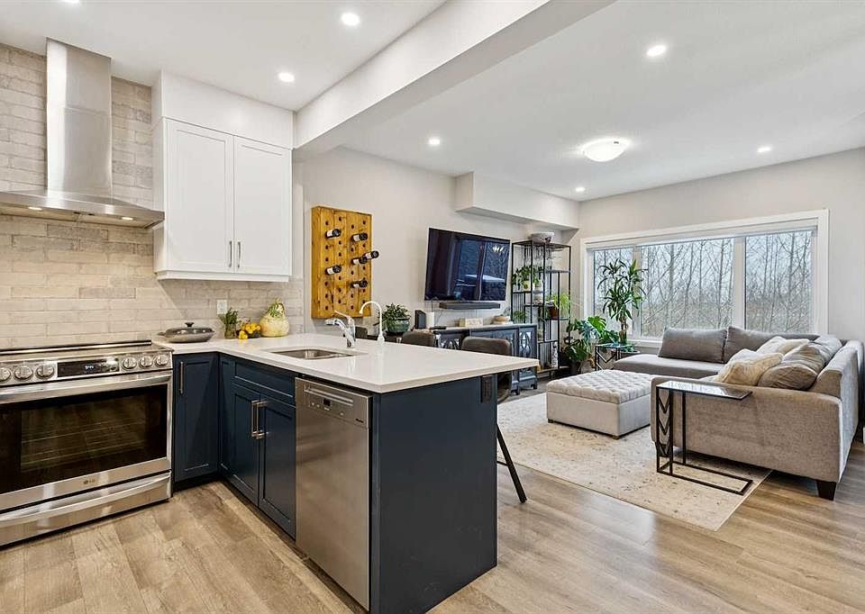 Walkout basementBacking onto the treesContemporary comfortOversize windowsUpgraded appliance packageQuartz countersChimney-style hood fan