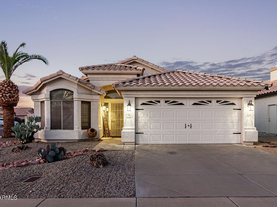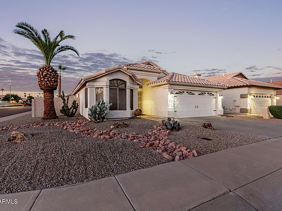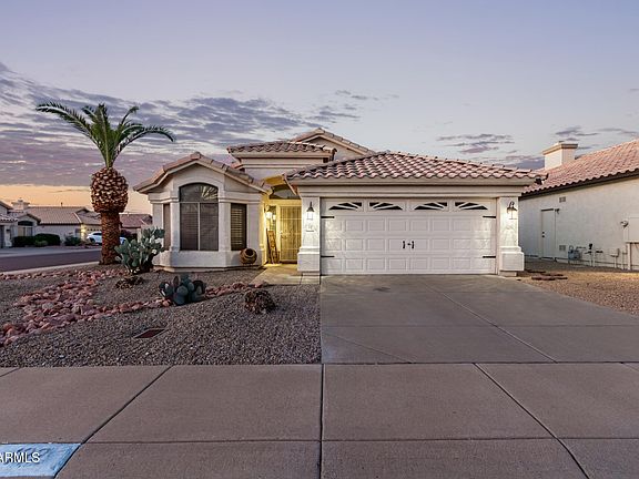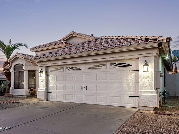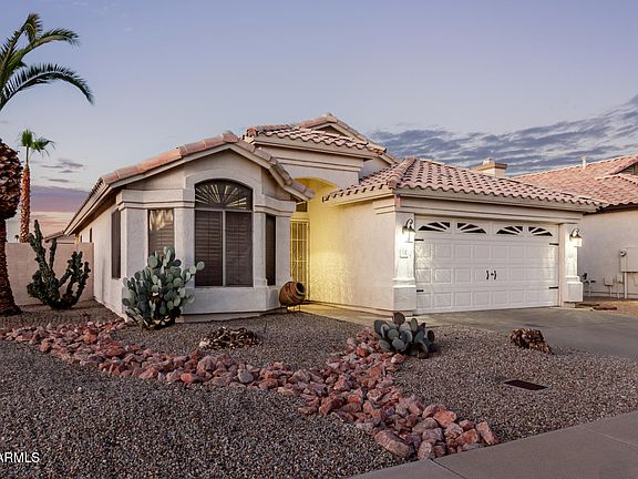 A gorgeous 3 bed, 2 bath property in Moonlight Cove is now for sale! Nestled on a premium corner lot & featuring an easy-care desert landscape, 2 car garage, and great curb appeal, it's sure to be the home for you! Inside you will find a sizeable dining & living area w/vaulted ceilings, perfect for entertaining. The eat-in kitchen offers ample cabinetry, a pantry, granite counters, tile backsplash, built-in appliances, a breakfast bar, and a breakfast nook w/a lovely bay window & plantation shutters. The primary suite showcases soft carpet, a walk-in closet, and a full ensuite w/dual sinks. Also including a wonderful backyard w/a covered patio and a sparkling blue pool/spa combo, this home has it all! Don't miss out!