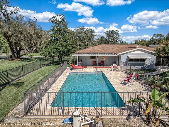 Delightful pool home on 1/2 acre in the Spring Lake Community. This 2 bedroom 2 bath home has many great features . Starting inside you will find stainless steel appliances(2017), in house laundry room, large great room, his/her master walk in closet, whole house generator with 500 gallon propane, hot water heater 2020, and newly painted interior/exterior. On to the outside, home is completely fenced in the back, new windows a few years ago with hurricane awnings, 12x14 shed and a beautiful open pool. Home has a large screened back porch and an additional open back porch extending to pool area. Nicely manicured oversized yard with mature oaks.