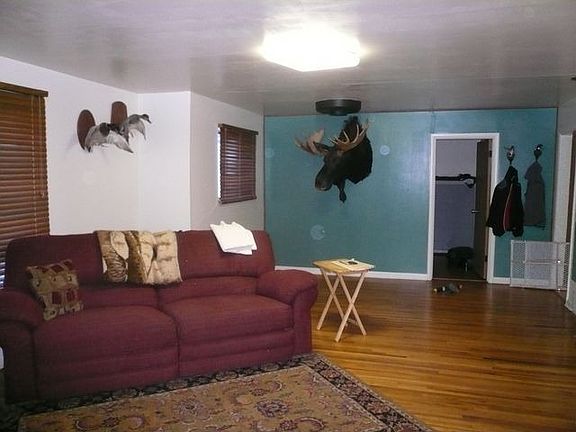 3 bed, 1 bath, hardwood floors in lr, newer carpet in bedroom, newly remodeled bath, kitchen has newer cabinets and new laminate countertops, range, microwave, 1 yr. old refrigerator and new laminate floors, basement has laundry and room for storage and a small family room/office/bedroom. Nice covered deck 8'x16', storage garage, great back yard w/many lilac bushes. This home is located close to schools, hospital, park, library, indoor pool and in the summer months the rec center is about 4 blocks by foot.