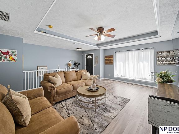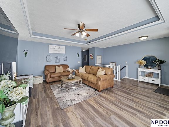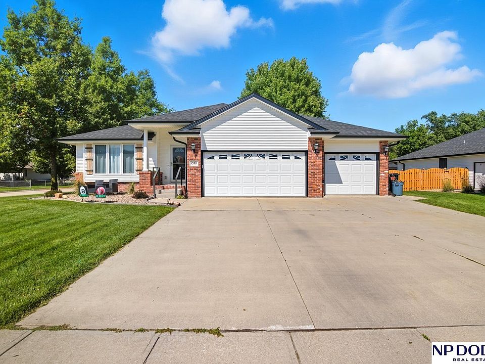 Stylish and spacious! This 4-bedroom home offers 3 bedrooms on the main floor and a conforming 4th below grade. The exterior shines with crisp white vinyl siding accented by black trim/gutters and a striking brick detail, plus a 3-car garage, fenced yard, and a huge corner lot at the mouth of a cul-de-sac. Inside, you’ll love the LVP flooring, tray ceiling in the living room, and a bright kitchen with solid-surface counters, white cabinets, stainless appliances, can lighting, and a cozy eat-in area that opens to the covered deck as well as an option for main floor laundry . The large primary suite provides a relaxing retreat. The beautifully finished lower level includes a wet bar, spacious rec room, 4th bedroom, ¾ bath, and generous storage. Move-in ready and perfect for both everyday living and entertaining!