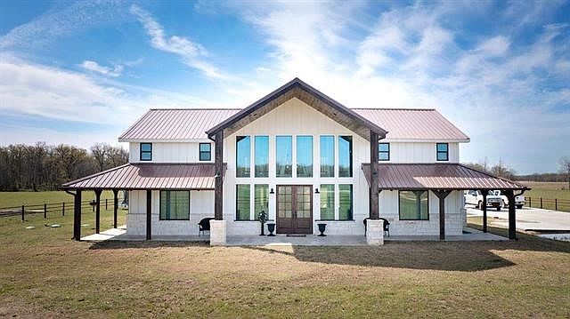 STUNNING Custom built 4 bedroom 2.5 bath home on 25 acres, to be surveyed out of larger tract, NE of Paris TX. Pull through the gated entrance to improved pasture for livestock and a nice stand of mature hardwoods for the outdoor enthusiast. Home features an open concept, split bedroom arrangement and an abundance of natural lighting. Completed in 2020, home boast vaulted ceilings, Austin stone accents, custom woodwork, iron stair rails and catwalk, beautiful cabinetry, and quartz countertops throughout. Kitchen outfitted for the gourmet cook, with work island, plenty of countertop and custom cabinetry and walk-in pantry. Enjoy Texas sunsets on your back porch or around the firepit area. This beautiful Texas Ranch awaits you. Additional land available