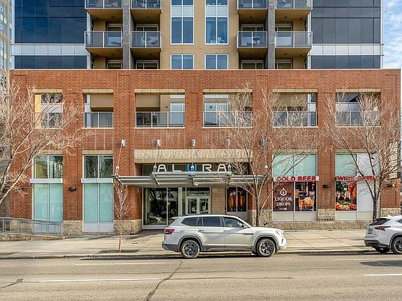 Welcome to the prestigious Alura! This expansive 800 sq. ft. corner unit on the 27th floor boasts soaring 9-foot ceilings and breathtaking eastward views, perfect for witnessing Alberta’s stunning sunrises. Crafted with modern living in mind, the open-concept layout seamlessly connects a spacious kitchen and living area, making it the perfect setting for both relaxation and entertainment. Both bedrooms are generously proportioned, with the primary suite offering a walk-through closet leading to a stylish four-piece ensuite. Floor-to-ceiling windows flood the home with natural light, framing panoramic views of the Calgary Stampede. This unit includes a titled underground parking stall, a dedicated storage locker, and access to visitor parking. Residents benefit from premium amenities, including an on-site fitness center, resident lounge, full-time concierge service, and round-the-clock security. Ideally located within walking distance of downtown, 17th Avenue, Stampede Park, Starbucks, Shoppers Drug Mart, Sunterra Market, and the Victoria Park C-Train station, it also offers quick access to scenic river pathways for cycling and walking. Experience the best of 18+ living. Schedule your private viewing today and discover this remarkable home!