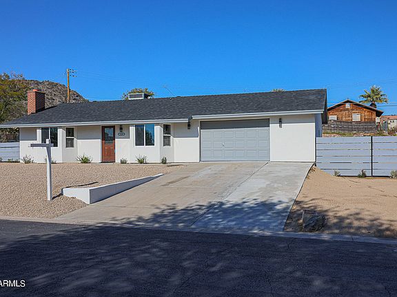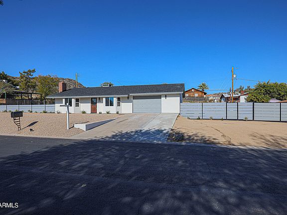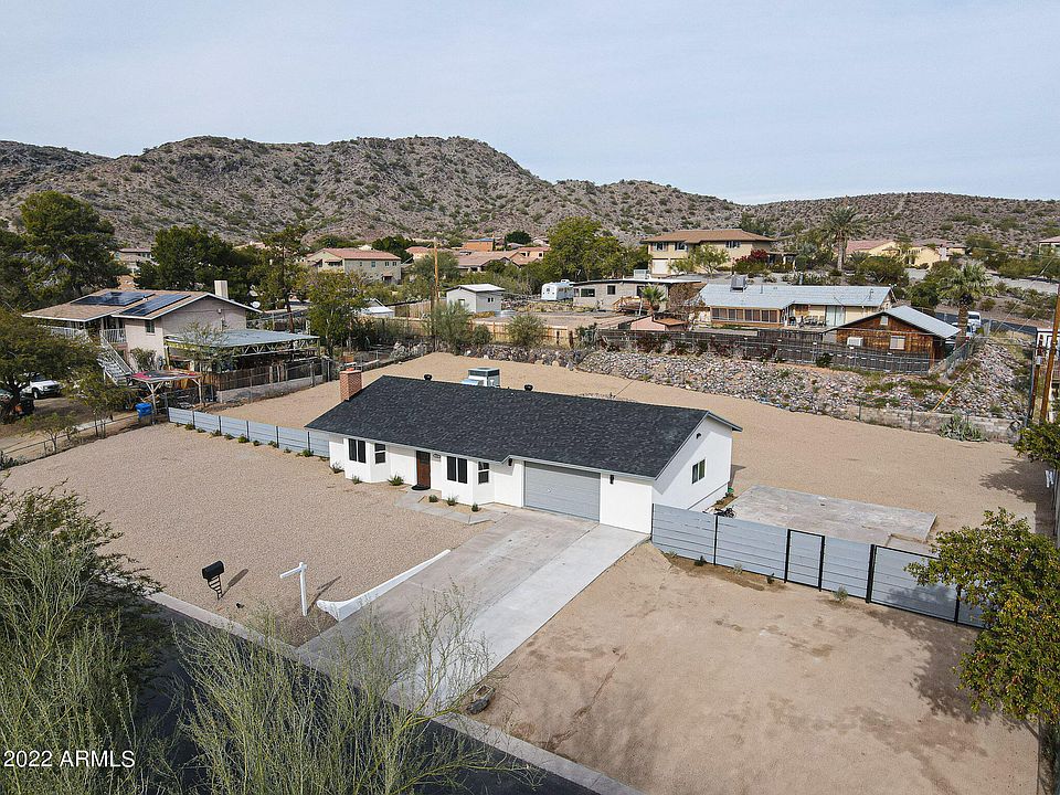 Spectacular single-level home on a huge 18,000 sq ft lot! This bright and open 2 bed/1 bath home features ample natural light, striking wood-look tile in all the right place, new carpet in the bedrooms, an updated bathroom, and a spacious garage with epoxy flooring. The remodeled kitchen boasts granite countertops, exquisite cabinetry, and new stainless steel appliances. The property includes an RV gate with ample room for parking, along with magnificent mountain views and easy access to the entire metro Phoenix area. Welcome home!