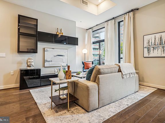 Spring on this fabulous 2 bedroom, 2 full bath condo in downtown Silver Spring only steps to the Silver Spring Metro Station and upcoming Purple Line! As you walk into the light filled living space, you’ll love the 11 foot ceilings, floor-to-ceiling windows, and open floor plan. The unit features 3 very large walk-in closets, 2 private balconies, quartz countertops, wood floors, separate storage space, and full-size washer and dryer in unit. The many building amenities include a fitness room, roof terrace with tree top views to Downtown Bethesda and the Mormon Temple, secured bike storage room, sky lounge, concierge and spacious lobby with fireplace. Separate storage unit included and pet friendly! Enjoy Silver Spring’s breweries, farmer’s markets, music venues, shops, dining, and the newly built Montgomery County Aquatic Center all at your doorstep.