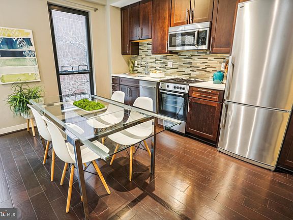 Built in 2016, this cool & contemporary building is located just a couple of blocks from the Silver Spring Metro. This unit features engineered hardwood flooring throughout, quartz countertops, stainless appliances, in-unit full size washer & dryer, and balcony that overlooks a treed green space. The many building amenities include a fitness room, roof terrace, bike storage room, sky lounge, concierge and sophisticated lobby with fireplace. Stroll down to the Starbucks for a cup of coffee or stop by one of the many local restaurants, music venues, and farmer markets. You will love the convenience of transportation, shopping and dining all right outside your front door. Includes storage space. Pet friendly!