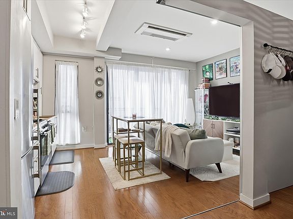 Perched on the 8th floor of The Octave in Downtown Silver Spring, this bright 1BR/1BA condo makes every one of its 460 square feet work hard. A wall of glass with a sliding door opens to your private balcony with wide city and treetop views, filling the home with natural light. The sleek, open kitchen is anchored by a center island and modern quartz counters, with stainless steel appliances and wood‑style plank flooring creating a clean, contemporary look. The open living/dining area flows easily for movie nights or work‑from‑home days, while the bedroom offers good closet storage and an oversized bath. An in‑unit washer/dryer and energy‑efficient windows keep life simple and comfortable. Octave 1320 spoils residents with a concierge‑attended lobby, fitness room, club/meeting space, secured bike storage, and an enclosed rooftop sky lounge plus open‑air roof terrace with grills and sweeping western views. Directly across the street is the brand‑new Silver Spring Recreation & Aquatic Center with multiple pools, spa, fitness facilities and community rooms, and it’s just a short stroll to MOM’s Organic Market, restaurants, cafés, AFI, The Fillmore, breweries and the year‑round farmers' market. All this less than half a mile to the Red Line Metro (and future Purple Line), buses, and major commuter routes; urban convenience at its smartest scale