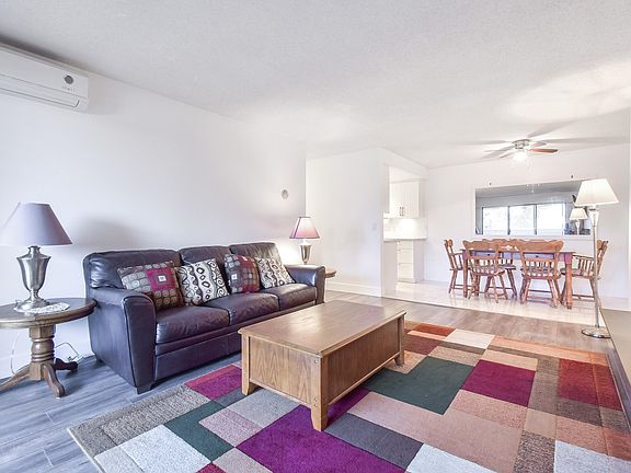White cabinetsStone counter topsStainless appliancesMarble flooringLaminate flooringUpdated bathroomAir conditioning