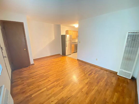 This is a standard flat with a nice living room that opens up to the kitchen. Spacious closet in the bedroom and a bathroom with shower and tub. Some updates include a built-in microwave, hardwood, and off-street parking is available for purchase. Hurry, this will definitely go fast at this price!