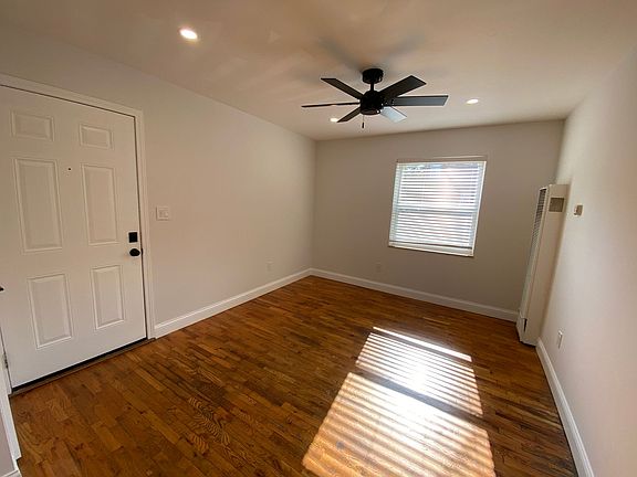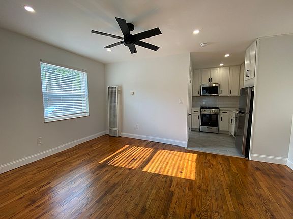 This is a standard flat with a nice living room that opens up to the kitchen. Spacious closet in the bedroom and a bathroom with shower and tub. Some updates include a built-in microwave, stainless steel appliances, hardwood floors, stacked washer/dryer in unit and off-street parking is available for purchase.