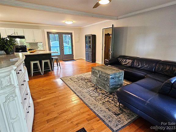 1320 Jamestown Rd Morganton, NC 28655 - 3 Bedroom, 1 & 1/2 Bathroom home with 24 x 34 insulated workshop/garage. Freshened home with recent paint, hardwood & vinyl plank floors, updated kitchen with quartz countertops, island and black appliances. Heated and cooled den/bonus room off the kitchen/dining area with exterior entrance. Modern bath vanity. 3 Bedrooms with ceiling fans. Primary bedroom with 1/2 bath including sink & vanity. Oversized rear deck for outdoor entertaining. Deck and fenced area off the deck would make a great pet area. Organic garden, with peppers, herbs and flowers, in the back yard as well as a chicken coop/run. 2 peach tress, 2 plum trees, and blueberries. Retreat to the large workshop, work from home or finish all those projects you have wanted to pursue. Home includes an encapsulated crawlspace with dehumidifer that would be a welcomed blessing for many allergy sufferers.