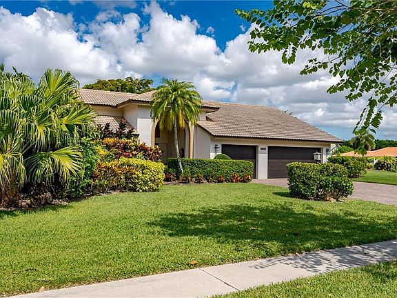 This beautifully designed custom model home in Foxfire sits on a lake and golf view! This is THE largest lot in Foxfire at .46 acres and one of the largest homes in Foxfire with 5 bedrooms! The home is spacious and cozy with an open concept kitchen with a large area for entertaining and enjoying life! The master en suite has two bedrooms! There is a second suite on the opposite side of the home and two more guest bedrooms conventionality located! The back patio/lanai is spacious, located on the golf course with a lake view! The garage has it's own a/c unit and has a beautiful epoxy floor, with a large workshop in addition to the two car bays with a third bay for a golf cart! The golf cart conveys with the home! The pool is heated by solar panels! Storm shutters on every window with modern cloth electric shutters on the back porch! 2011 tile roof! The home has an automatic generator that instantly turns on when the power goes out! Located just minutes to grocery, shopping and restaurants. The beach is only a 12 minute drive! Foxfire has a beautiful 27 hole Arthur Hills designed golf course which was recently renovated! One of the the lowest priced golfing games in Naples!