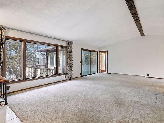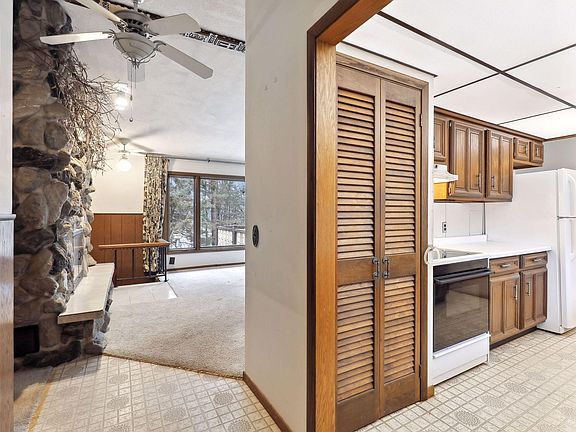 This home was built by the original owner and sits on a pristine 2-acre parcel flanked with abundant woods and majestic pine trees. There is even a great view of a small lake, Fish Lake. A private road leads up to this unique home, which features one large outbuilding and a tuck-under garage. The lower level offers great space with abundant possibilities. The upper level boasts a great room with a large stone fireplace, a dining area, office space, a 3-season porch, 2 bedrooms, and a full bath to complete this floor. While the home needs updating, the potential is limitless with the 2-acre parcel, making it a complete and amazing package.