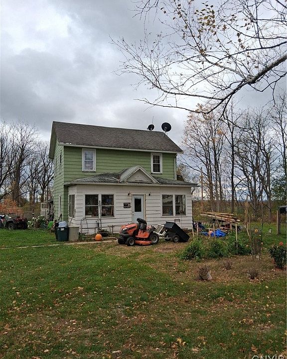 Enjoy peaceful country living in this classic 1840 farmhouse situated on a beautiful 1.4-acre corner lot. Much of the property is fenced—perfect for animals, gardening, or recreation. Inside, you’ll find an enclosed front porch, a spacious living room with an energy-efficient pellet stove, and a formal dining room featuring built-in cabinetry and a propane fireplace heater. The first floor also includes a bedroom, full bath, kitchen, and enclosed back porch with laundry area. Upstairs offers two large bedrooms and additional storage space. Some updates have been started, including a new pedestal sink and linen cabinet ready for installation. Conveniently located within an easy drive to Ithaca, Cortland, and Auburn. Don’t miss your chance to make this charming country home your own!