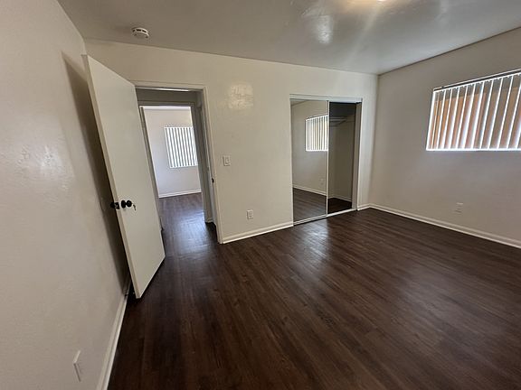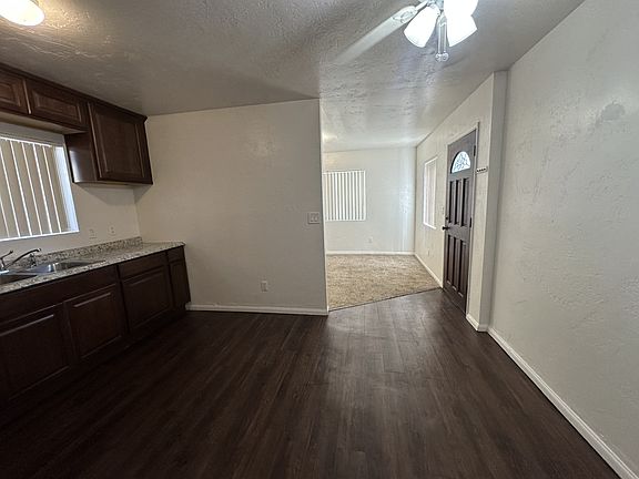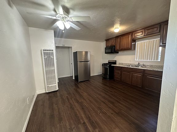 This is a 2 bedroom, 1 bath home. Home has fridge, stove, flooring in kitchen, bedrooms, hallway, and carpet in living room. Inside laundry hook ups!! Very private as it is the rear house on this property. There is a very large fenced yard and 1 parking stop. Close to freeway and shopping center.