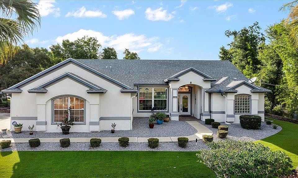 Custom built 4-bedroom home with almost 2400sf of first class living space on a oversized, high and dry, meticulously landscaped lot in a unique location in the middle of the Deltona Hills golf course. All this and only minutes to I-4, the Orlando Metro Area, and the beaches. Fantastic curb appeal with a side entry oversized garage with a large window, and a spacious covered front entryway with brick pavers and a custom, etched glass front door. The front elevation of the house is a tasteful mix of landscape rocks, flagstones, and stunning synthetic turf…you will feel like you just arrived at a luxury Florida resort! Inside you will find a contemporary and open floor plan with high ceilings, real hard wood floors, ceramic tile, and carpet in the bedrooms. This beautiful home includes a huge eat-in kitchen with oak cabinets and a long breakfast bar overlooking the family room with a gas fireplace and a surround sound stereo system. There is also a separate formal living room and large dining room. The huge primary suite measures 17x15 and has a huge bathroom with a garden tub, a separate glass and tiled shower, 2 sinks and granite countertops, and a huge air-conditioned walk-in closet. This 3-way split floor plan has 2 other large bedrooms and an oversized guest bathroom with 2 sinks and glass shower, and there is another huge 17x11 fourth bedroom and bathroom with its own door to the exterior of the house, which is perfect for a home office and/or business. Also included is a massive 27x19 rear screened porch with a summer kitchen, which is set up perfect for outdoor entertaining. Other extras and upgrades include a whole house Generac gas generator (which can be operated remotely and has a warranty good through 03/08/2028), storm shutters for all the windows & garage, crown molding & recessed lighting, solid 6-panel wood doors, a 12x6 laundry/utility room with a large sink and extra cabinets, an automatic sprinkler system, rain gutters for the entire house. The garage door opener can be operated by wifi. The roof was replaced in 2015, the top of the line Trane AC unit was installed in 2014, the septic system was serviced last year, and much, much more! This home has been well taken care of and is in fantastic condition and ready for immediate occupancy!