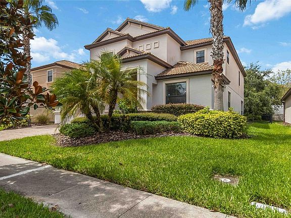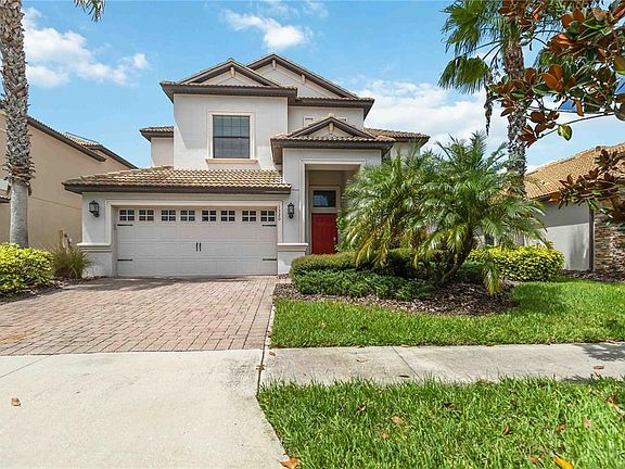 Welcome to luxury living in the exclusive ChampionsGate community! This stunning home offers an unparalleled lifestyle, complete with a full golf membership included in the HOA. Step inside and be greeted by a grand foyer that sets the tone for the elegance found throughout the home. The interior has been freshly painted, and the second floor and staircase feature brand-new waterproof vinyl flooring. The gourmet kitchen is a chef's dream, boasting upgraded 42-inch espresso cabinets, stainless steel appliances, and gleaming granite countertops. It flows seamlessly into an open-concept dining area and family room, perfect for entertaining. A guest bedroom and a full bath are conveniently located on the main floor, providing a private retreat for visitors. The second floor features a spacious loft, ideal for office-work. The massive primary bedroom is a true sanctuary with three walk-in closets, one of which was converted from a room to create an abundance of storage for even the most extensive wardrobe. As a resident of this luxury gated community, you'll have access to incredible amenities. The Oasis Club is a 14,000-square-foot clubhouse with a restaurant, movie theater, fitness center, game room, tiki bar, lazy river, and cabanas. The Plaza is an exclusive, residents-only clubhouse featuring a restaurant, bar, fitness center, game room, pickleball courts, and two additional pools. The newly opened Retreat Club is a full-scale water park that is sure to delight! Your HOA covers all resort amenities, a full golf membership, tennis, pickleball, a $75 monthly Plaza food credit, gated security, complete lawn care, cable, phone, internet, and monitored home security. CDD and trash services are included in the taxes. With golf carts welcome on community roads, it's easy to enjoy the ChampionsGate Country Club lifestyle. Located just minutes from world-class golf, theme parks, premier shopping, and fine dining, this home offers the perfect blend of luxury, convenience, and lifestyle. Don't miss this exceptional opportunity—schedule your private tour today!
