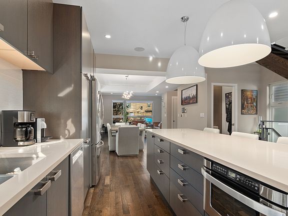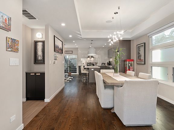 Nestled in one of Wicker Park's most coveted locations, just two blocks from Division Street, this stunning 4-bedroom, 3.1 - bath SmartTech single-family home is designed for luxurious living and seamless entertaining. Step inside to a welcoming entryway with custom-built cabinetry, leading to a sunlit living room with a large picture windows. The chef's kitchen features a spacious island, designer backsplash, and a dining area illuminated by a Sonneman Constellation light fixture and indirect tray ceiling lighting-perfect for intimate dinners or lively gatherings. A stylish main-floor powder room adds convenience. Upstairs, the serene primary suite offers custom Hunter Douglas electric blinds, multiple closets including a walk-in, and a spa-like en-suite bathroom with a heated floor, dual vanity, oversized shower with a bench, rain shower head, massage body spray, and volume control. Two additional bedrooms provide generous space, and the second full bath boasts a heated floor, skylight, and tub/shower combination. The fully finished lower level is ideal for a media room, play area, or home gym, featuring new carpeting, fresh paint, a European-style water closet, and a fourth bedroom with ample closet space. The exterior, fully repainted in 2020, is complemented by custom landscaping, deck planters, and a timer-controlled irrigation system by Reveal Designs. A fully finished deck with wired speakers, a pergola, a custom fire feature/table, and a Weber grill-each with dedicated gas lines-creates an entertainer's dream, while the landscaped backyard offers a peaceful retreat with irrigated raised beds for flowers or a vegetable garden. Additional highlights include a whole-home sound system with ceiling speakers inside and on the deck, wall-mounted TV wiring in key rooms, custom Closet Works storage solutions, and eco-friendly features such as SmartTech1.5, an Energy Star rating, and no VOC paint. Recent upgrades include roof repairs in 2022. Located steps from the Division Blue Line and Wicker Park's best dining, shopping, and nightlife, this meticulously maintained and thoughtfully upgraded home is a rare gem in one of Chicago's most vibrant neighborhoods.
