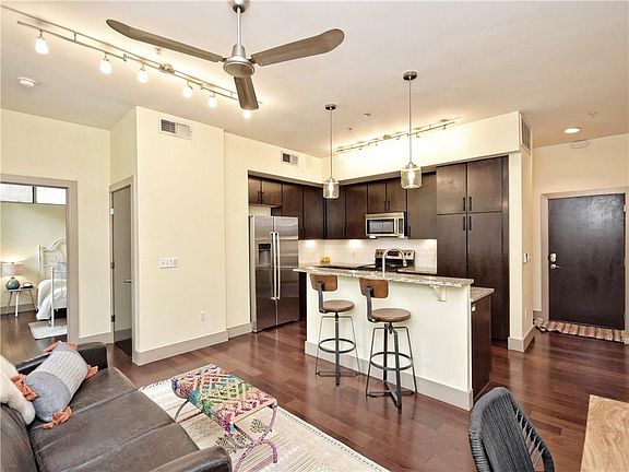 Sophisticated first floor corner unit in the heart of Mueller. Soaring ceilings, large windows, and stunning new backsplash keep the unit light and inviting. Wood floors throughout and granite countertops. 2 large walk-in closets (bedroom and by front door). Enjoy views of the park while sipping coffee on your patio. Street level access without going through the lobby. Incredible walkability - moments from Alamo Drafthouse, Restaurants, Torchy's Tacos, HEB, trails, parks, and pools.Restrictions: Yes