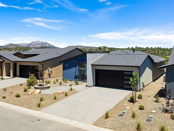 Experience the ultimate in modern living with breathtaking views of Granite Mountain and the surrounding pines. This brand-new home offers comfort, style, and convenience in an exclusive 55+ community. Step into a bright and airy open-concept living space, complete with a cozy gas fireplace and a kitchen designed for entertaining. The kitchen features premium appliances and direct access to a beautifully landscaped backyard. The spacious primary suite boasts a luxurious walk-in shower, dual vanities, and a generously sized walk-in closet. The outdoor area is perfect for relaxing or entertaining, featuring a large covered patio. Additional highlights include a two-car garage, thoughtful design details, and a prime location that combines tranquility with convenience. Make this stunning property your next home!