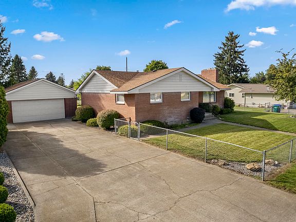 Pride of ownership is apparent throughout this charming 2,676 sq foot brick rancher in the heart of Spokane Valley! The main floor features a large family room with a lovely wood-burning fireplace, formal dining area and a partially updated kitchen. Proceed down the hallway to a full bathroom and three main floor bedrooms. The primary bedroom has an additional attached 1/2 bath. The partially finished basement includes a full bar, additional family room & fireplace, utility room and plenty of storage. The fully-fenced 1/3 acre property includes a covered patio, full sprinkler system and large backyard. An over-sized detached garage also features a workshop space in the back. Gas forced air, Central A/C, central vacuum and all appliances are included with this beautiful home. Close distance to CV schools. A must see home!