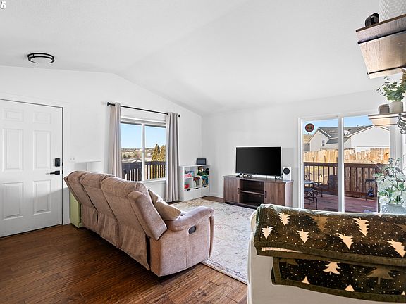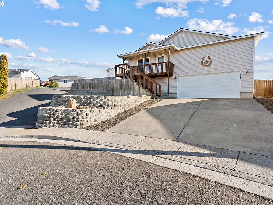 Welcome home to this beautifully updated 3-bedroom, 2-bath residence tucked away on a quiet cul-de-sac near Sunridge Middle School. With 1,264 sq ft of thoughtfully refreshed living space, this home blends comfort, style, and functionality.Step inside to find new interior paint, updated trim and doors, durable wood plank flooring, and stainless-steel appliances that elevate the kitchen. The existing washer and dryer stay with the home too!! Both bathrooms feature new countertops, adding a clean, modern touch. Outside, enjoy a fully fenced yard with brand-new fencing, fresh sod and UG sprinklers—perfect for pets, play, or relaxing outdoors.One of the home’s standout features is the enlarged deck, ideal for summer BBQs and shaded evening gatherings. Take in scenic views to the north toward Pendleton and to the south toward the Blue Mountains while enjoying your own private retreat. Additional highlights include abundant storage and two extra parking areas, offering space for an additional vehicle or RV.This move-in-ready home checks all the boxes—location, updates, views, and versatility. Don’t miss this opportunity! Call your favorite real estate agent today to schedule a showing.