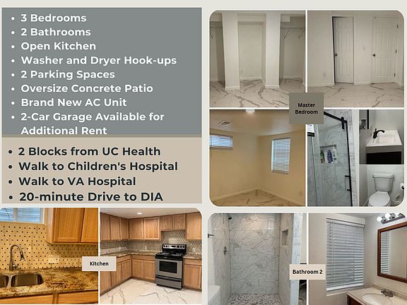 Lower Unit for rent in Aurora near UCHealth Hospital! Newly renovated and beautiful! Lots of outdoor patio space and driveway space. Newly built garage for additional rent as well. Perfect for health professionals or grad/med/dental/pharmacy/PT students on the Anschutz Medical Campus or anyone wanting to live in this area.