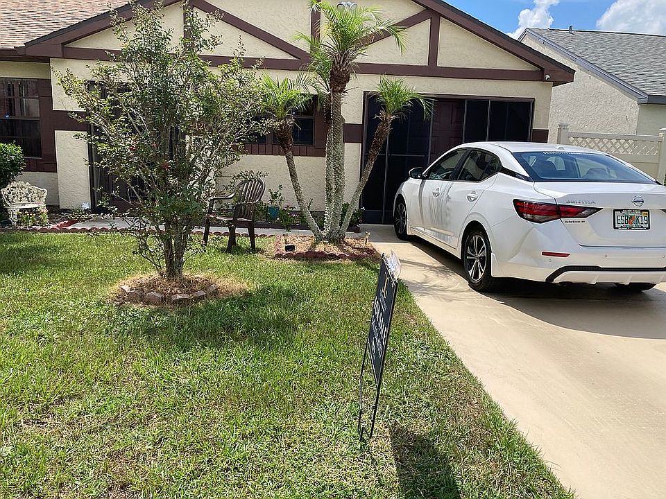 Beautiful, clean waterfront home, with enclosed Florida Room, large red brick patio overlooking the canal. This is a bright “homey” has screens for the garage