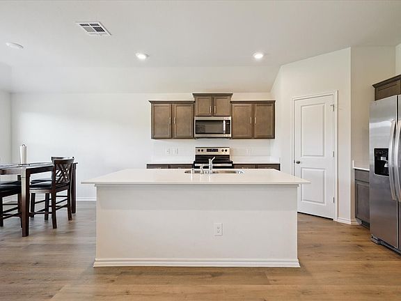 Move-in ready home featuring an open layout with decorative lighting, and quartz countertops! 3 bedrooms with 2 bathrooms. Washer, dryer, and refrigerator convey with the sale. Sprinkler system installed in both front and back yards. Located near community parks, playgrounds, and walking trails, perfect for outdoor activities and relaxation. Enjoy the on-site swimming pool and clubhouse for social gatherings and family fun. Situated in the Riverfield community, just minutes from I-30.
