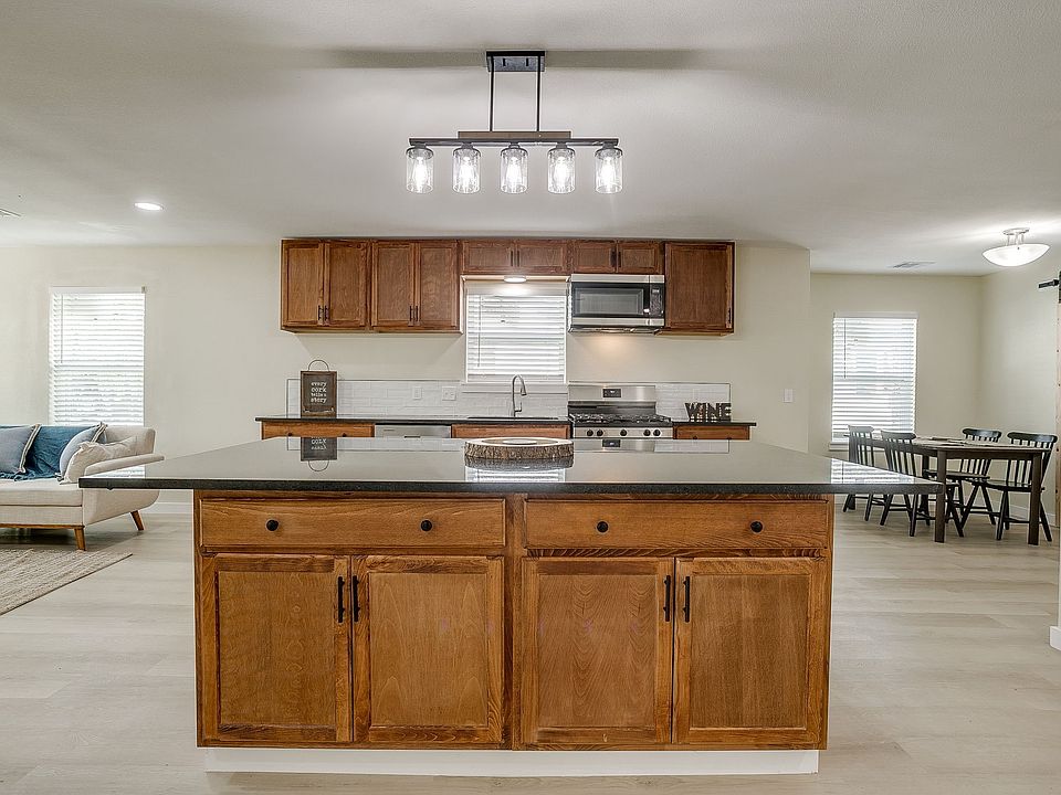 Welcome home to this beautifully updated four bedroom, three bath residence nestled in the established Jones Oakview neighborhood of Haltom City. Thoughtfully designed for modern living, this 1,866 square foot home offers two full primary suites, ideal for large families, multi-generational living, or guests wanting their own private retreat. The interior features luxury vinyl plank flooring and an inviting open concept layout that connects an oversized living area with an expansive kitchen designed for entertaining. The kitchen showcases a massive island, granite countertops, built-in cabinetry, stainless appliances, and abundant prep and storage space, creating a perfect gathering spot for friends and family, especially during the holidays. Each bedroom is generously sized and arranged for both comfort and privacy, with one suite located separately for flexibility. Bathrooms include updated cabinetry, dual vanities, and beautiful finishes that make everyday living feel elevated. Outside, a detached garage provides flexible use for parking, storage, or workshop potential, while the spacious yard invites room to garden, play, or relax. This property offers easy access to downtown Fort Worth, the Stockyards, and the Mid Cities with convenient proximity to major highways, restaurants, and shopping, all within Fort Worth ISD. Combining function, comfort, and a fresh modern style, 1320 Wayne Street is a move-in ready home that perfectly balances everyday convenience with the warmth of thoughtful design.