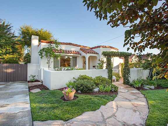 Rare find in Northwest Glendale! Peaceful, Spanish home in desirable El Miradero neighborhood, lovingly maintained, craftsmanship throughout. 2 bedrooms, 1 bath, 1000 sq. ft. on 8,291 sq. ft. landscaped, flat lot. A flagstone pathway and front porch lead to a spacious living room w/ hardwood flooring, recessed lighting, custom fireplace, w/ soft stucco wall finish. Curved archway opens into dining room and kitchen with stainless steel sink, energy-efficient appliances, double oven, new dishwasher, and refinished wood cabinetry. Bathroom upgrades include cherry cabinet, granite countertop, newer fixtures, w/ tub/shower enclosure. Custom closets, built-in bookcases and storage in bedrooms. French doors open to beautiful garden retreat, large tiled porch w/ Spanish tile roof, artist's studio, arbors, brick patios, pathways, privacy, and possibilities! Detached garage converted into studio with cedar paneling and tile floor plus additional storage. Energy-efficient sealant on newer main roof plus new roof on garage. Window replacements, HVAC, copper plumbing, and main sewer line replacement make this home ready to move in! Special financing available for qualified buyers. List of home improvements is available for download.