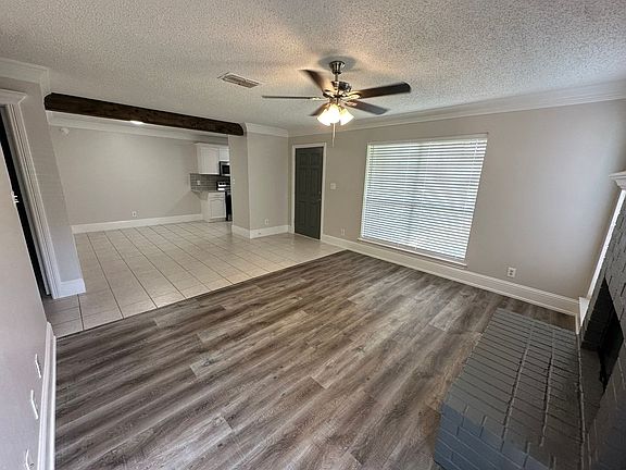 Welcome to this fully updated 3 Bed 2 Bath Home in Denton. This remodeled home boasts a modern finish out with luxury wood plank flooring, no carpet, a freshly painted interior, and stainless steel appliances. The spacious living room features tons of natural light and fireplace. Updated galley kitchen equipped with granite countertops, stainless steel appliances, and leads to your included washer/dryer set! Large primary bedroom with bathroom suite attached, dual vanities, and huge walk-in closet. Fenced backyard and with patio and 1 car garage. No pets allowed, no exceptions.