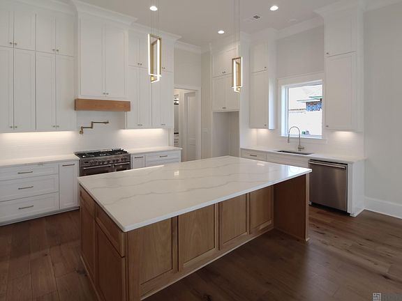 Naturally finished islandCustom showerExtended patioSlipper tubSubway tile backsplashQuartz countertopsTons of painted cabinets