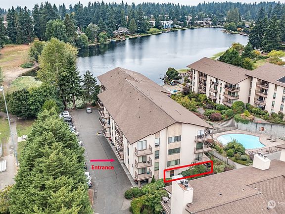 Lovingly updated No Stairs Ground Floor immaculate corner unit with its own fenced patio garden area & pet outlet.Super livable floor plan with a large living area,new flooring,updated kitchen/appliances with designer accents through-out.Bedroom is spacious with a generous organized closet system. Bitter Lake Village is an amazing 3 acre complex set on over 300 ft of private West facing Bitter Lake waterfront with incomparable on site amenities !! There's a wonderful pool with a spacious adjacent activity room,in building bike storage,complimentary laundry,gardening Patch & a Pickle Ball Court.The sandy beach has lots of boat & paddle board storage plus a huge Lakeside Dock & Picnic area.Gated & Secure entry with assigned parking included.