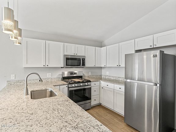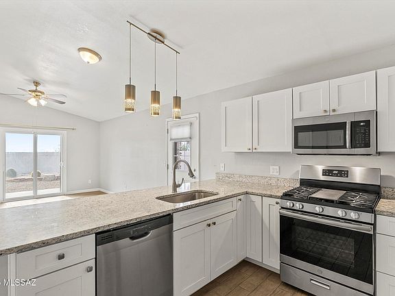 Experience the stunning vistas of Pusch Ridge and the Catalina Mountains from your large backyard in this beautifully updated Rancho Vistoso cul-de-sac home. Inside you'll find modern neutral tone paint, an updated kitchen with granite counters, custom white cabinets, newer stainless steel appliances and modern lighting. There is wood like tile flooring throughout (carpets in bedrooms). Updated bathrooms with tiled showers and granite vanities. Large doggie kennel with doggie door so your pets can enjoy fresh air anytime of the day. Outstanding location near shopping, dining, entertainment, medical, Catalina State Park and all that Oro Valley has to offer. And don't forget the fabulous VIEWS from one of the biggest lots in the neighborhood.