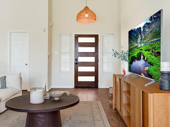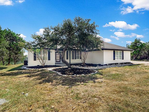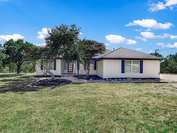 4.4 acres with voluntary hoa, very little deed restrictions.This attractive single-family residence in Leander presents an exceptional opportunity to own a home in excellent condition. The living room is a striking space, defined by its high, vaulted, and beamed ceiling, creating an atmosphere of grandeur and spaciousness. Imagine relaxing in this expansive area, the natural light accentuating the architectural details. The kitchen is appointed with granite countertops. A kitchen island provides ample space for food preparation and a kitchen bar offers a spot for conversation and casual dining.. The primary bedroom provides a private retreat with its ensuite bathroom. The bathroom features a double vanity and a tiled walk-in shower, creating a spa-like experience. There are 3 additional bedrooms and spacious secondary bathroom. A two-car garage with extra large drive for all the vehicles or play toys., In back yard a nice size patio and canyon views with loads of privacy. This updated and remodeled residence offers a blend of comfort and sophistication, designed for both relaxation and entertaining. All appliances updated along with new paint inside and out and roof is less than 1 month old. You can build another home, park boats, RV etc, have horses, goats, etc.
