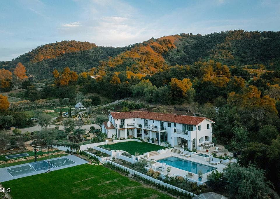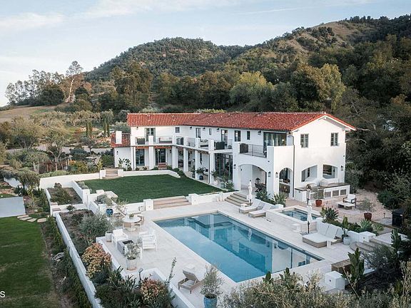 MOON MOUNTAIN VILLA is a unique luxury resort-style retreat designed for relaxation & rejuvenation situated amidst stunning natural beauty on 12-private acres with 360-degree views. It is stunningly positioned straight on the renowned Topa Topa Mountain ranges offering unparalleled views of Ojai's famous 'Pink Moment' Sunset Phenomenon Gated CommunityEXTERIOR LUXURY: the infinity pool and spa, a state-of-the-art cold plunge and sauna experience.The private pool, spa Sauna & cold Plunge, koi pond, Outdoor BBQ Kitchen Private Golden Outdoor Bathtub and gardens give the guests the feeling of being in a private Luxury resort & spa. The manicured lawns, and year-round flowering plants frame this serene haven, creating a private sanctuary. The Massive 1/2-acre front lawn is perfect for events, yoga sessions. Let not forget the enjoy, the pickleball court, basketball hoop, Floor trampoline, small golf putting spot, barbecue, and pizza oven.INTERIOR LUXURY: The home's interiors are a masterclass in relaxed elegance reminiscent of elevated Tulum, featuring curated furnishings that balance warmth and refinement with plush furnishings create an atmosphere of understated luxury has elevated every detail. MAIN VILLA -Two Story 5,400 sq ft Villa features 5 bedrooms & 4 baths beautifully appointed which all include exclusive access to expansive verandas with breathtaking views. Its open layout and sophisticated ambiance invite guests to enjoy that seamlessly merges indoor and outdoor living. A fully equipped gourmet kitchen two living rooms, and a chic indoor -outdoor fireplace lounge. Everything is bright and airy. Large sliding doors open to a spacious, first floor deck that runs the length of the house, offering 180-degree views of the mountains & pool and inviting an effortless flow between indoor and outdoor living. There are 2 full living rooms one that has a beautiful fireplace with a stunning arched window displaying the Mountains & the other has the dining room connected with a 12-foot theater screen for movie night from Here, mornings are best spent watching the sun grace the olives tress and endless mountain sweeps, while evenings come alive with the glow of sunset & then the Moon & Stars across the horizon. Two other living spaces - 275 sq ft Queen Bed Kitchen & Living room, desk, full bath with an extra full bed pull out bed and- 400 sq ft dome house. Fully furnished