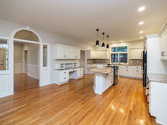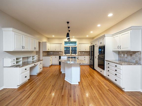 Welcome Home! Super Spacious Two-Story on cul-de-sac in prestigious Woodlands! Home features large front living/sitting room with electric fireplace-perfect place for your piano or could be a great home office! Kitchen with hardwood flooring, planning desk, granite counters, tile backsplash, island/breakfast bar, & casual dining area. Plus huge formal dining room for larger gatherings & entertaining! Step down to oversized family room with gas starter wood-burning fireplace. You'll LOVE spending time relaxing in the three-seasons room, leads to brick patio and gorgeous landscaped backyard with water feature & firepit! Guest bath & convenient laundry rm with soaking sink completes the main level. Upstairs, spacious Primary Bedroom Suite with large walk-in closet, cedar closet, en-suite full bath with two vanities, shower, & jacuzzi. Three additional bedrooms (one bedrm with private full bath & the other two bedrooms with jack-and-jill bath). Finished lower level includes 2nd family rm, pool table area, wet bar, & a non-conforming bedrm, 3/4th bath, & huge bonus storage &/or craft hobby room! Cen vac, security, irrigation. Three car garage with an additional stairway to the lower level. Updates: 2016 new Metro stone-coated Shake steel roof, 2022 added air scrubber to furnace, and two upstairs bathrooms updated as well. All information obtained from Seller and public records.