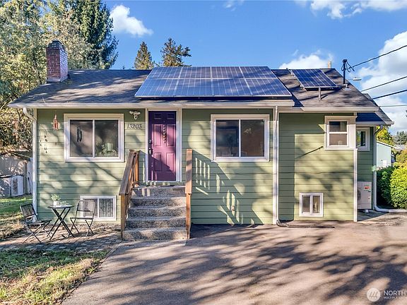 Extremely Charming 1940s bungalow on a shy quarter acre, thoughtfully maintained and upgraded for modern, energy-efficient living. Light-filled living room with cozy wood-burning fireplace and eat-in kitchen w/granite counters & stainless appliances. Flexible layout includes 4 bedrooms, 2 full baths & lower-level bonus room offering great versatility. Pre-inspected for peace of mind. Upgrades in past few years include New Roof, New Heat Pump, Triple-pane Windows, Exterior Paint & Owned Solar Panels that power the home nearly year-round with only minimal winter utility costs. The large, level lot offers ADU/DADU potential & features a thriving pollinator garden w/native plants, a multi-graft apple tree, and young cherry & plum trees.