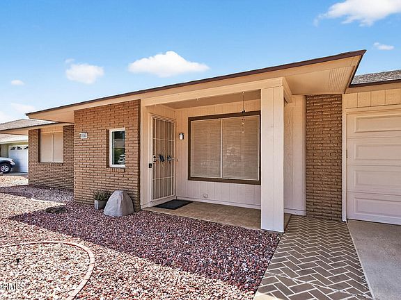 Beautifully maintained and move-in ready, this 1,531 sq ft expanded Bradford model offers a bright open floorplan with plantation shutters throughout. Major updates include a new roof (2017), HVAC (2023), water heater (2017), and fresh interior paint (2025). Double-pane vinyl windows enhance efficiency, while new bedroom carpet (2025) adds comfort. Enjoy the screened-in porch added just 3 years ago, plus an exterior repaint completed 2 years ago. All the updates have been done! This home is ready for you to enjoy Sun City West living at its best, where residents enjoy 7 golf courses, 4 recreation centers, pools, fitness, pickleball, clubs, and endless activities.
