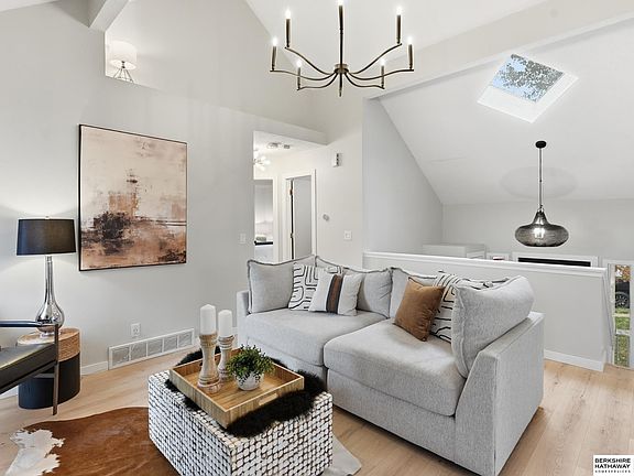 Updated and move-in ready! This charming split-entry home features vaulted ceilings, a bright skylight, and an updated white kitchen with modern finishes, stainless steel appliances, and solid-surface countertops. The main level offers spacious bedrooms, LVP flooring, updated bath, and convenient main-floor laundry, plus easy access to a large deck overlooking the fully fenced yard. A 2-car garage adds extra storage, and the location can't be beat - located in the desirable Southridge neighborhood within the Millard School District, close to parks, walking trails, and with quick interstate access. AMA