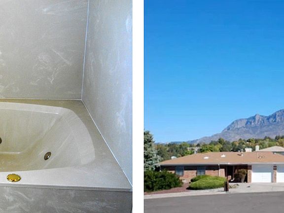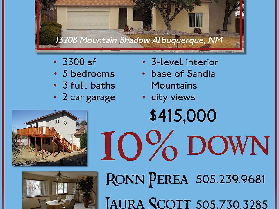 East of Tramway w/ 5 BRs, 2 MBRs, 3191 SF for under 400K! You enter thru the foyer w/ the sunken LR on the right w/ fireplace & vaulted ceilings & 2 BRs. In front of you is stairway to a MBR & other BR. On the right is updated kitchen w/ granite, formal DR & Huge Family Rm w/ staircase to large private Master Suite w/ balconey. Refidgerated Air & Swamp cooler. Oversized 2 car garage. Enormous backyard w/ grass & fruit trees make this a special place. Appliances stay. REC considered w/ 15% down.