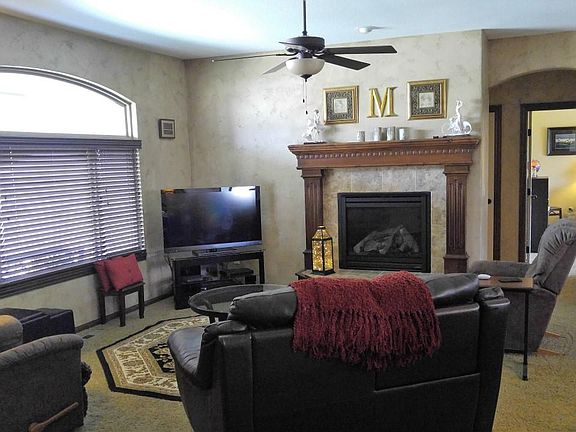PRICE REDUCED ON THIS BEAUTIFUL RANCH HOME . 9 FT CEILINGS W/BEAUTIFUL WALL TREATMENT, VERY OPEN PLAN W/BEAUTIFUL OPEN KITCHEN WITH ISLAND AND LARGE DINING AREA THAT OVER LOOKS THE DECKING AREA, ENJOY YOUR MORNING COFFEE FROM THE SCREENED IN DECK AND VIEW OF THE POND, TOTAL OF 5 BEDROOMS, 3 FULL BATHS, LARGE WET BAR AREA, VIEW OUT BASEMENT, 2 LARGE BEDROOMS, EXTRA AREA OFF OF THE REC ROOM FOR OFFICE OR GAME ROOM, LOTS OF STORAGE AREA'S & A BEAUTIFUL LANDSCAPED YARD. DO NOT MISS SEEING THIS HOME LESS THAN 5 YEARS OLD STILL HAS THAT BRAND NEW HOME FEEL.