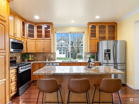 Experience refined living in this elegant 4-bedroom, 2.5-bath residence, where transitional and traditional design converge seamlessly. The luxurious primary suite features a spacious walk-in closet and an opulent 5-piece en-suite bath. Impeccably maintained, the lush yard and covered patio offer an inviting oasis for year-round entertaining. Perfectly positioned near parks, premier shopping, and an array of amenities, this exceptional home embodies a perfect blend of comfort, community, and convenience—a true gem.